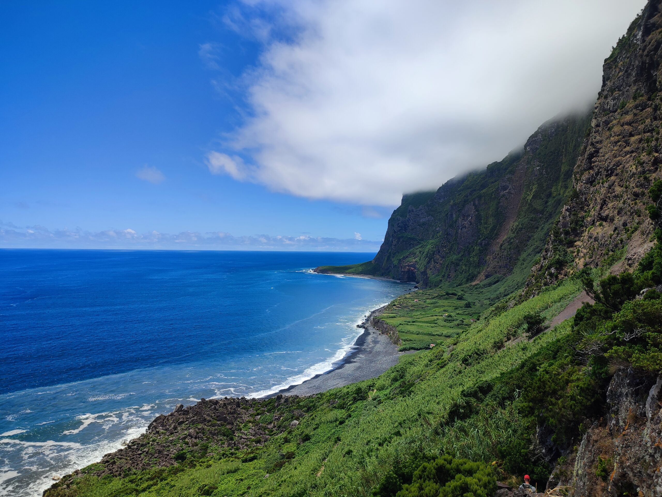 C’est un circuit avec un rythme parfait avec des enfants : la possibilité de visiter et randonner le matin jusqu’en début d’après-midi puis de trouver un endroit où se baigner. Mon seul regret est de ne pas avoir pris un vol pour Corvo au lieu de Flores (avec aller/retour en ferry pour Corvo) et de passer une nuit sur place. Cela aurait été finalement plus tranquille et avec moins de transferts ; et peut être de rester un jour de plus sur Flores, c’est vraiment une ile à part, bien différente des îles centrales. Au début, on est un peu déstabilisé par le « manque » d’infrastructures touristiques (très peu de restaurant par exemple), ou le manque de produits alimentaires (pain, œufs, …), mais une fois qu’on a compris le fonctionnement, on apprécie d’autant plus la beauté et la tranquillité de l’île.